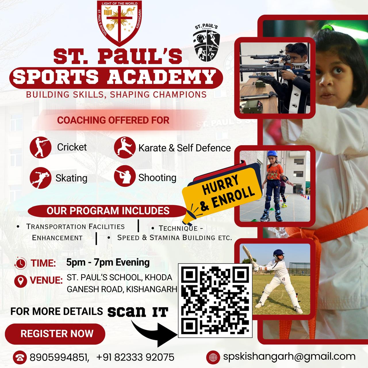 St. Paul's School, Kishangarh, fosters holistic education, blending academic excellence with character development. Our rigorous curriculum is complemented by a rich array of co-curricular activities, nurturing well-rounded individuals. With state-of-the-art facilities and dedicated educators, we inspire a love for learning and personal growth. At St. Paul's, we cultivate leadership, critical thinking, and compassion, preparing students to excel academically and thrive in an ever-changing world. Join us in shaping tomorrow's leaders today.